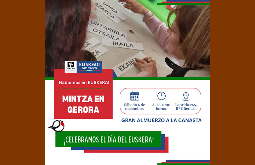 Abenduaren 6an, 11etan, Ikasturte Amaiera eta Euskararen Eguna, mintza eta bazkaria Gerora euskal elkartearekin, helbidea: Laprida 266 (Güemes auzoan).