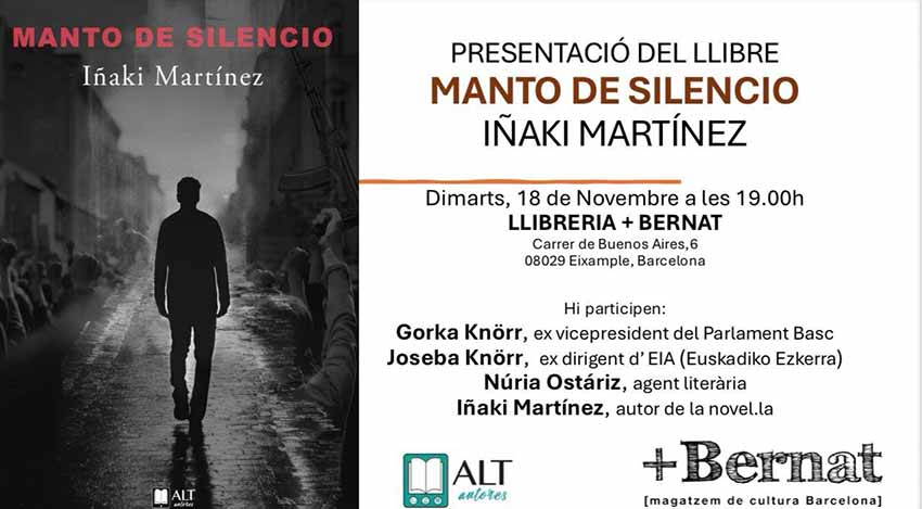 Azaroaren 18an, asteartea,.Iñaki Martínezen bere nobela berria, 'Manto de silencio', aurkeztuko du + Bernat liburudendan 19:00etan, Perturren desagerpenean inspiratua, idazlea bera, Gorka Knörr, Joseba Knörr eta Núris Ostariz bertan direla.