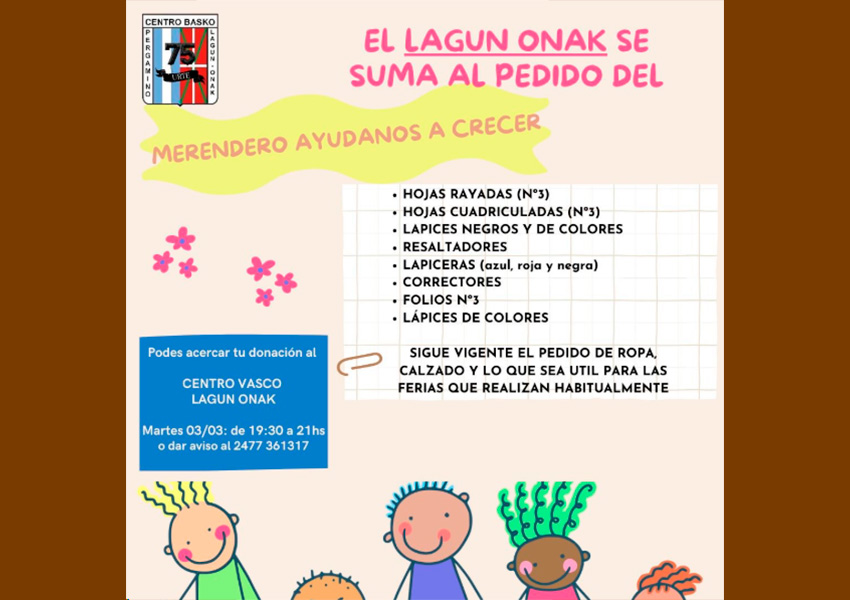 Pergaminoko Lagun Onak Euskal Etxea partaide da 'Lagundu hazten' jantokiaren kanpaina berri batean eta bat egiten du tresnak biltzen laguntzen.