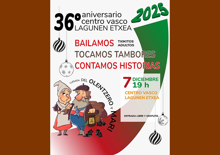 Abenduaren 7an 19etan Lapridako Lagunen Etxea Euskal Etxeak bere 36. urtebetetzea ospatuko du, festa eder batez, lehen mailako osagarriez: txiki eta helduen dantza, danborrada, istorio kontatzea, guztien artean eguberri-zuhaitza muntatuko da eta Olentzero eta Mari Domingi bisitari etorriko dira, azkenik guztiek elkarrekin topa egiteko bertan daudenen eta ez daudenen beta gero emankor baten alde. Sarrera libre eta doan.