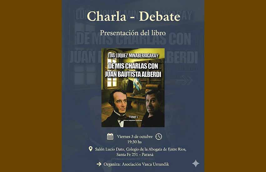 Irailaren 3an, ostirala, Juan Bautista Alberdiri buruz idatzi duen liburua aurkeztuko du Luis Lúquez Minaberrigaray-k Entre Ríos-eko Abokatu Elkargoan, Urrundik Euskal Etxea antolatzaile.