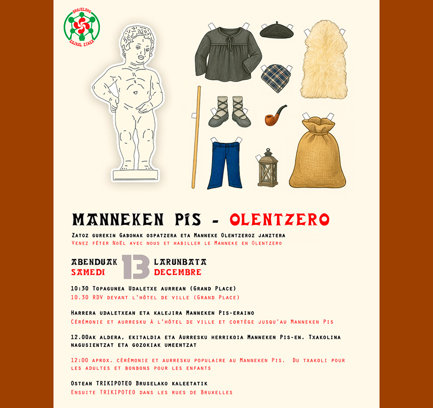 Abenduaren 13an izango da, larunbatez, eta hiriaren sinbolo debn Manneken Pis Olentzeroz jantziko dute. Gonbidatua zaude ekitaldira!