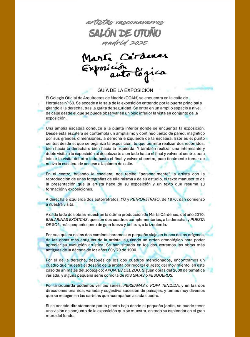 Abenduaren 19an inauguratu zuten eta urtarrilaren 20ra arte egongo da zabalik Marta Cárdenas artista donostiarraren erakusketa COAM Madrilgo Arkitektoen Elkargo Ofizialean (Hortaleza 63).