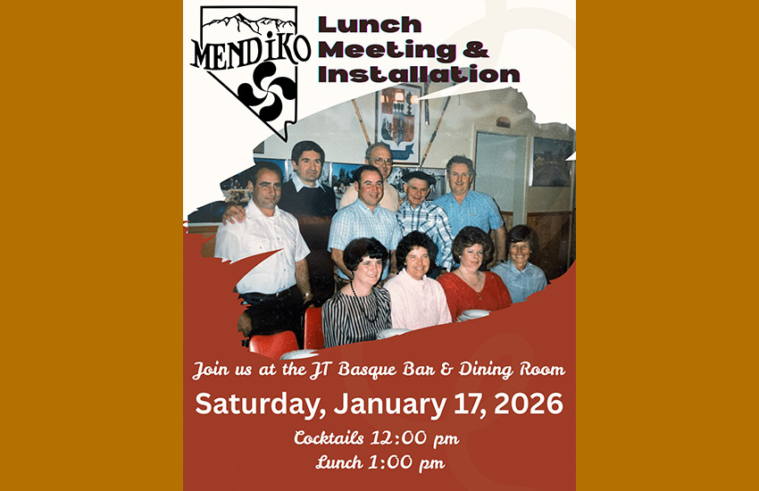 Urtarrilaren 17an, larunbata, 12:00etatik aurrera, zintzur bustitzea eta bazkaria Gardnervilleko JT euskal ostatuan, herriko Mendiko Euskaldun Clubaren zuzendaritza berriaren sartze ekitaldian..