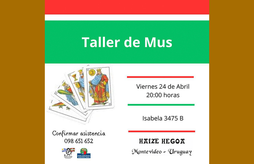 Mus Tailerra ostiral honetan, apirilaren 24a, 20:00etan, Montevideoko Haize Hegoan (Isabela 3475 B).