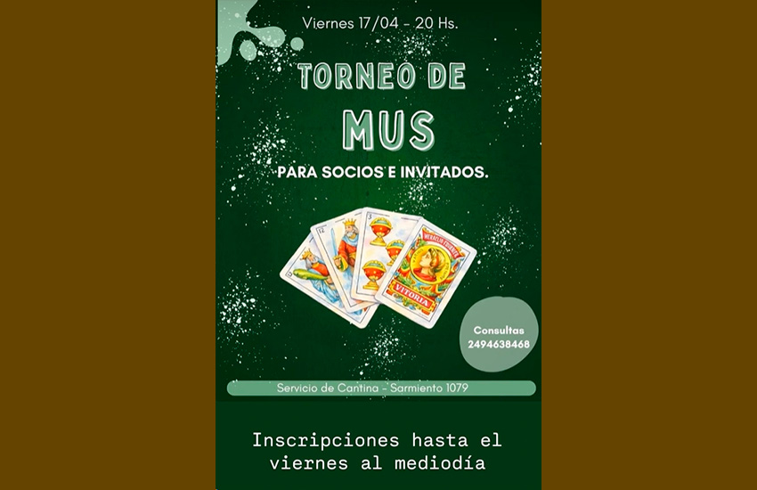 Apirilaren 17an, ostirala, Mus Txapelketa jokatuko du 20:00etatik aurrera Tandilgo Gure Etxea Euskal Etxeak. Izen-emateko aukera eguerdiraino. Kantina zerbitzua egongo da.