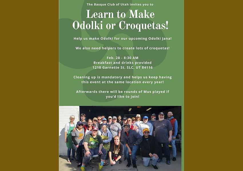 Martxoaren 7an Odolki Eguna ospatu eta odolki freskoa jan ahal izateko, gaur larunbata, otsailaren 28a, "Odolki Prestatze Eguna" Salt Lake Cityn, Utah-ko Euskal Etxea antolatzaile.