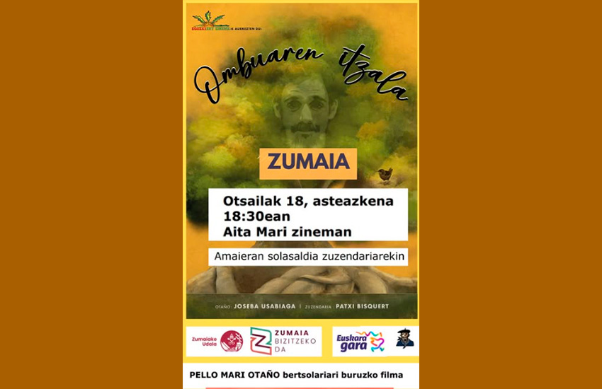 Otaño bertsolariaren bizitza, Diasporari zinez lotua, kontatzen duen 'Ombuaren itzala' filmaren emankizuna Zumaiako Aita Mari Zineman 18:30etan, Patxi Bisquert zuzendaria bertan dela solaskide.
