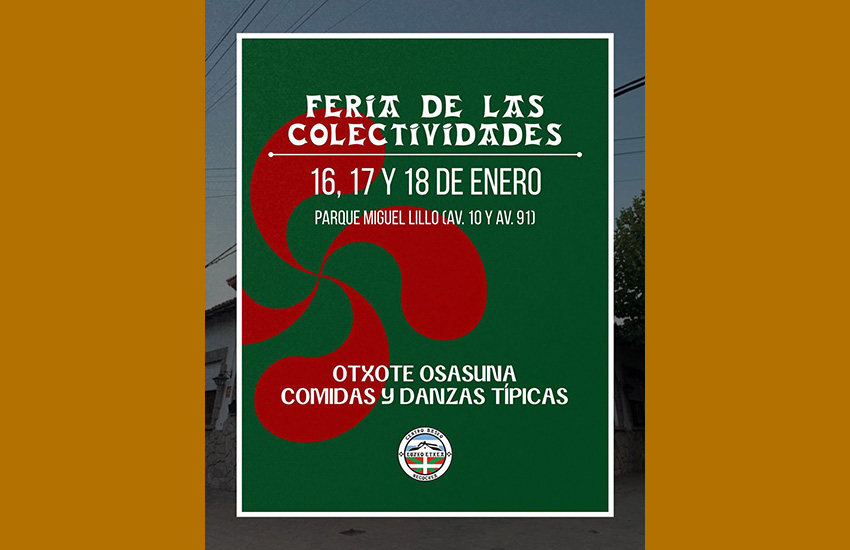 Ostiral, larunbat eta igandean, urtarrilaren 16, 17 eta 18an, Necocheako Euzko Etxea partaide izango da bertakoo Gizataldeen Azokan Lillo Parkean, bere stand, janari eta ikuskizunekin.