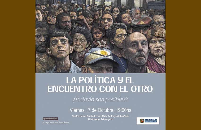 Urriaren 17an, ostirala, 19etan, Oturuntza filosofiko saio berri bat: "Politika eta hurkoarekin bat egitea, posible al da?, La Platako Euzko Etxean, lehenengo solairuan, Liburutegian, Nicolás Torres Ressaren eskutik.