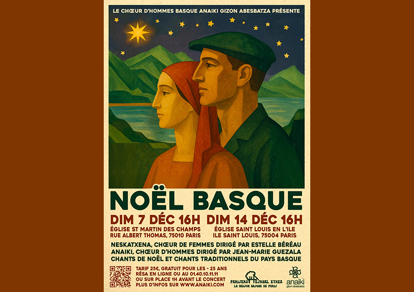 Abenduaren 7an, igandea, Pariseko Anaiki gizon abesbatzak, Jean-Marie Guezala zuzendari, aurtengo bi eguberri kontzertuetako lehena emango du, Saint-Martin des Champs elizan (75010), eta bigarrena, 14an, Saint-Louis en L'ïle elizan (75004).