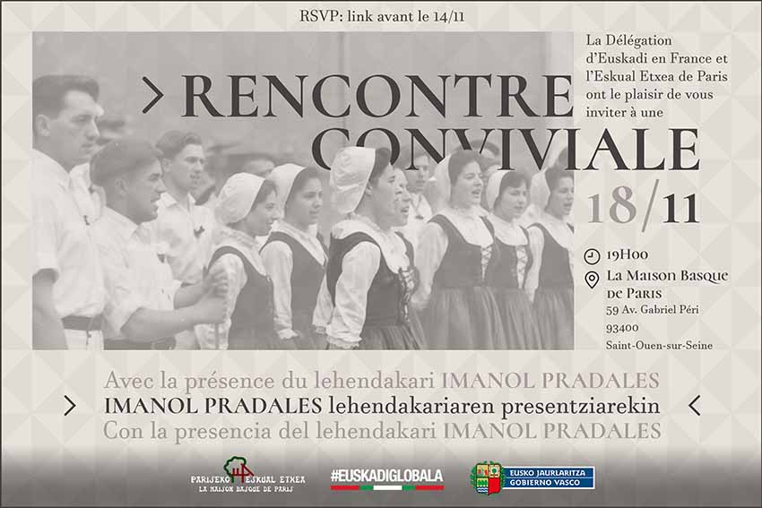 Asteartean bertan hasiko duen bidaia instituzionalaren baitan Imanol Pradales lehendakariak Pariseko Euskal Etxea bisitatuko du eta bazkide eta lagunekin bilduko da.