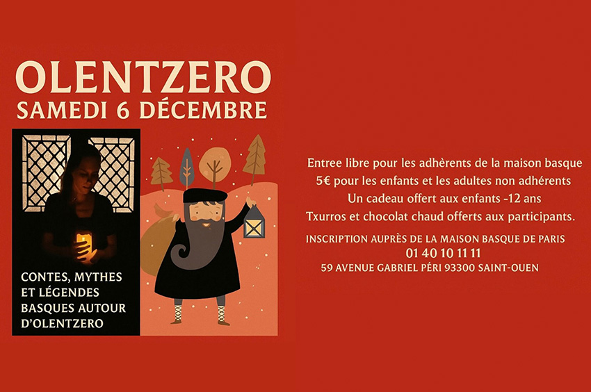 Egun berean, harrera-ekitaldia Olentzerori, haur eta familientzat; https://www.helloasso.com/associations/pariseko-euskal-etxea/evenements/2025ko-olentzero