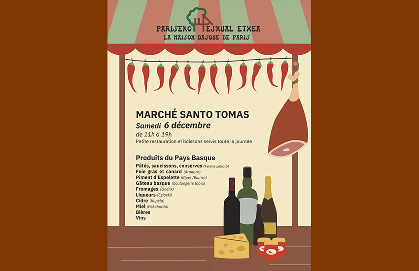 Abenduaren 6an, larunbata, San Tomaseko Merkatua Pariseko Euskal Etxean, euskal mozkin eta produktu tradizionalekin. 11etatik 19etara. Taloak ere egin eta salduko dira.