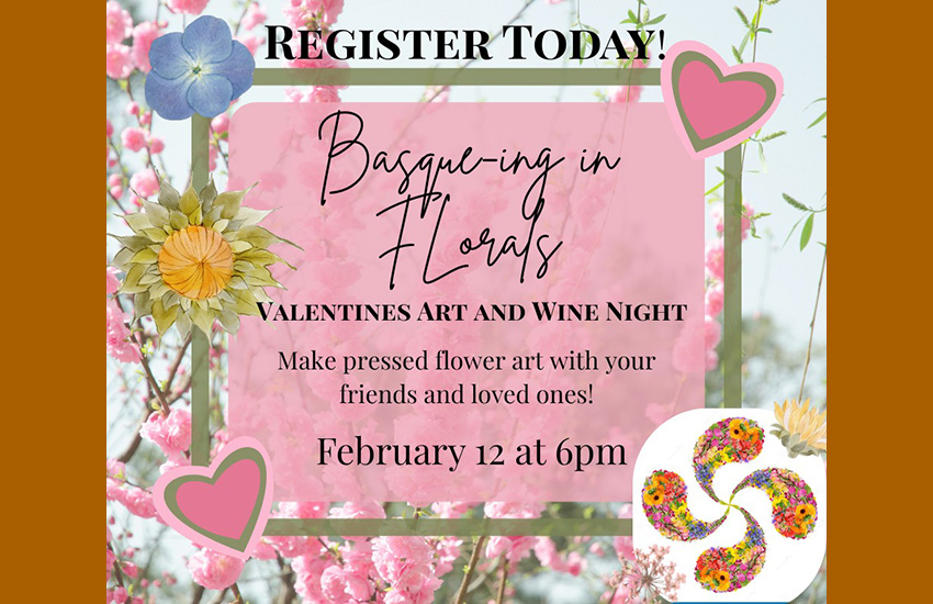 San Valentin eguneko testuinguruan, arratsaldepasa Boiseko Euskal Museo eta Kultura Etxea antolatzaile, lore idortuak egiten 18etatik aurrera, artea eta ardo kopa eta aperitifa ere tarteko.