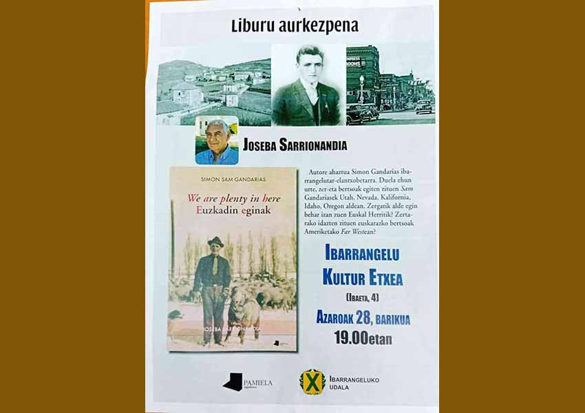 Azaroaren 28an, barikua, 19:00etan Ibarrangeluko Kultur Etxean Simon 'Sam' Gandarias-en "We are plenty in here" liburua aurkeztuko du, liburuaren editore den Joseba Sarrionandiak.