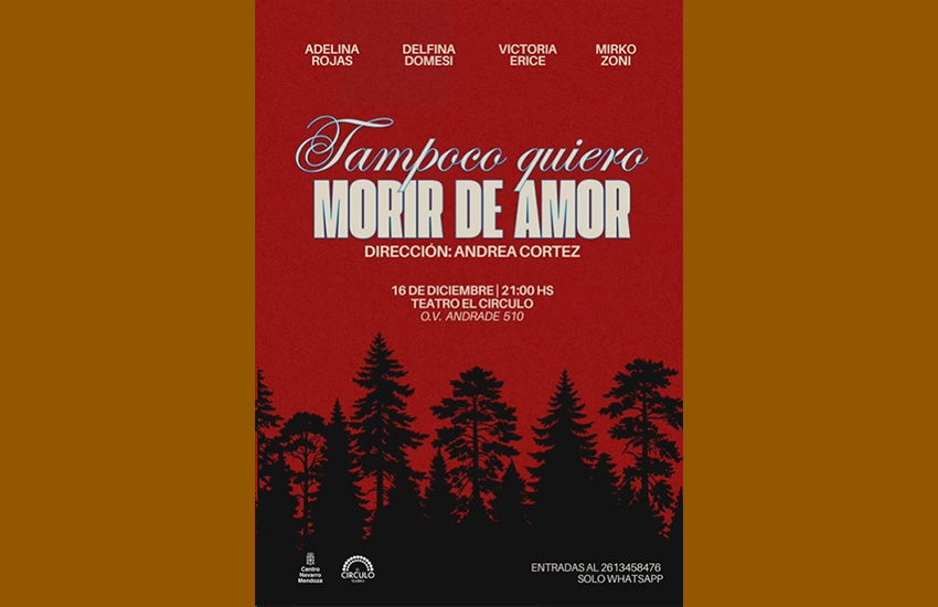 Abenduaren 16an, asteartea, 21:00etan, Mendozako Nafarroako Etxeak gonbidatzen zaitu "Tampoco quiero morir de amor" obra ikustera, Andrea Cortez zuzendari, El Círculo Antzokian.