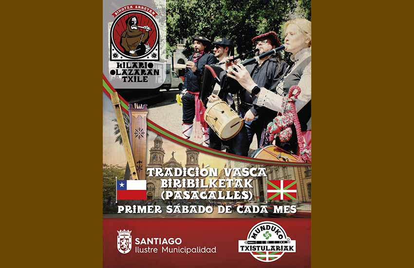 Azaroaren 1ean, larunbata, Txileko Hilario Olazaran Txistu Taldearen biribilketa eskainiko du Santiagoko Arma Plazan hileko lehen larunbatero bezala.