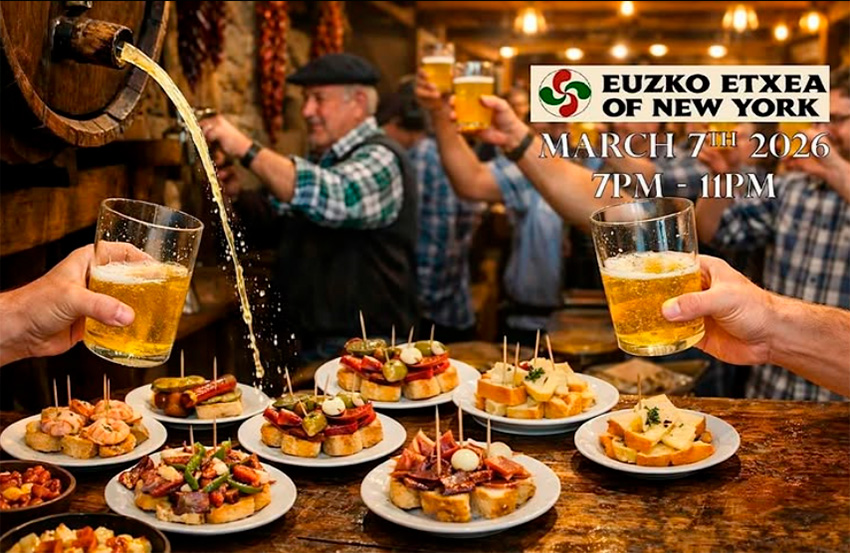 Martxoaren 7an, larunbata, Udaberriko Pintxo-Potea antolatu du New Yorkeko Euzko Etxeak, taberna irekia eta pintxoaldi irekia.