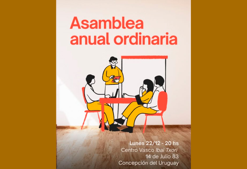 Abenduaren 22an, astelehena, Urteko Ohiko Batzar Nagusia egingo du Ibai Txori Euskal Elkarteak bere egoitzan (14 de Julio 83), Entre Ríos probintziako Concepción del Uruguay-n.