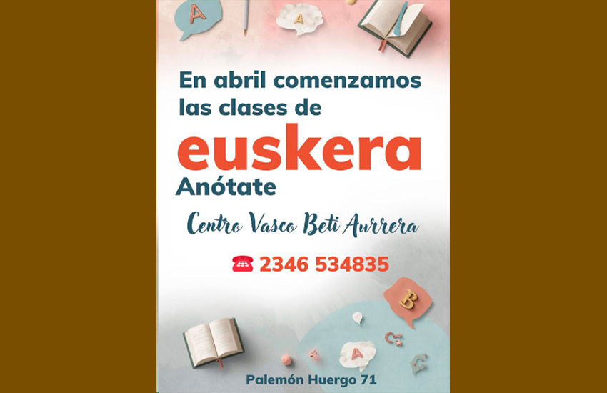 Zabalik du oraindik Chivilcoyko Beti Aurrera Euskal Etxeak bere euskara eskolen ikasturte berrian izena emateko epea. Eskolak apirilean abiatuko dira, Adriana Irrazabal Garmendia irakasleak emanik. Zalantzak hor eta 2346534835 zenbakian argitu daitezke.