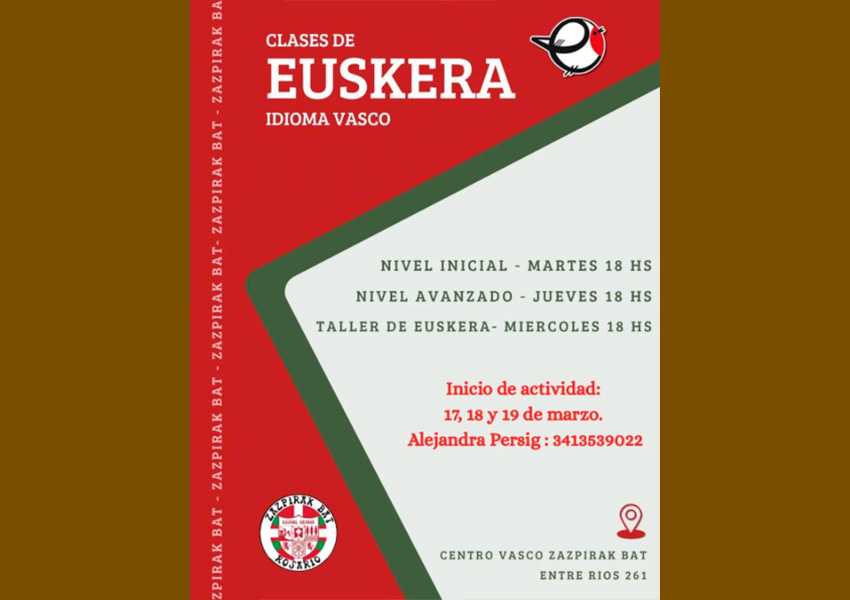 Rosarioko Zazpirak Bat Euskal Etxean euskara klaseak hasiko dituzte gaur, bihar eta etzi.