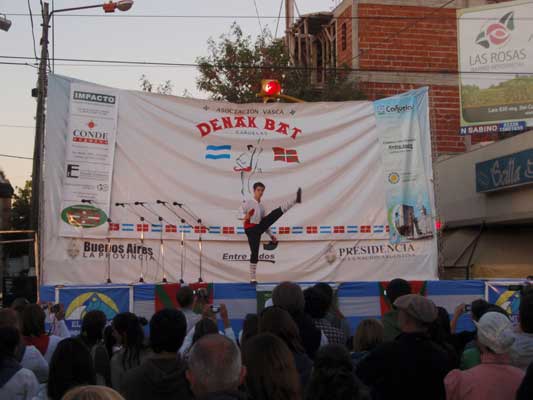 [Chivilcoy-ko euskaldunak ere igo ziren Cañuelaseko plaza nagusian kokatuta zegoen agertokira. Haiek Arku Dantza egin zuten (argazkia EuskalKultura.com)]