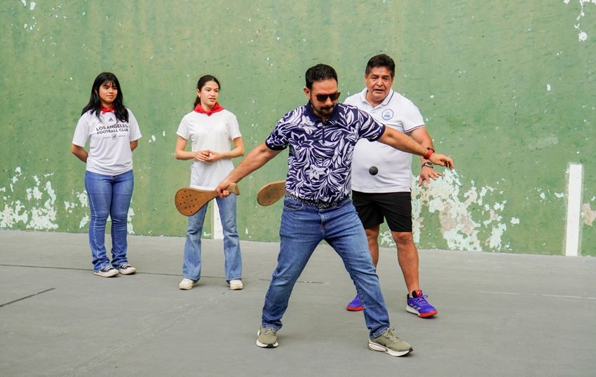 Jaialdia pilota erakustaldi batekin hasi zen, El Salvadorreko Frontoi Erakundeko presidentea den José Ventosa arduradun. Bertaratu zirenek pilota modalitateen berri jaso zuten eta bertatik bertara ezagutu ahal izan zituzten jokoa, jokalekua eta baita jokatzeko erabiltzen diren tresnak, hala nola, palak, jai-alai edo xistera saskiak,, pilotak… Kolpe batzuk ematera ere animatu ziren frontoiaren kontra, askok sekula izan gabeko esperientzia bilduz.