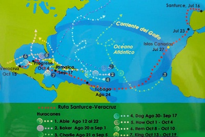 [Montserratek Santurtzitik Veracruzera egin zuen bidaia; eta bidean aurkitu zituzten zazpi hurakanen arrastoa (argazkia EuskalKultura.com)]