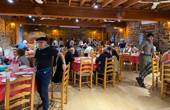 Bazkaltzeko orduan Euskal Herriko zaporeak nabarmendu ziren, luxuzko menuko otordu batekin: ajoarriero, axoa, ardi gazta eta euskal pastela. Bapo jan ondoren, helduak dantzatzera animatu ziren, txikienek Olentzerorentzako eskulanak prestatzen zituzten bitartean. Eta agian euskal musikak erakarrita, han agertu egin zen Olentzero!! Umeek berehala inguratu zuten, gutunak eta eskulanak eman zizkioten eta Euskal Herritik bide luzea eginez etorritako ikazkinak kontatutako ipuinak gogoz eta arreta handiz entzun zituzten.