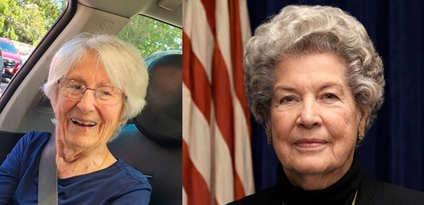 Anna Biscay (ezkerrean) eta Regina Bastida, euskal jatorriko bi emakume beterano, biak 104 urtekoak euren bizitzak eta zerbitzuak Oroitarriak atxiki nahi duen oroimen bizia islatzen dute (Biscayren argazkia egileen bidez eskuratua; Bastidarena, Library of Congress bidez, 2013).